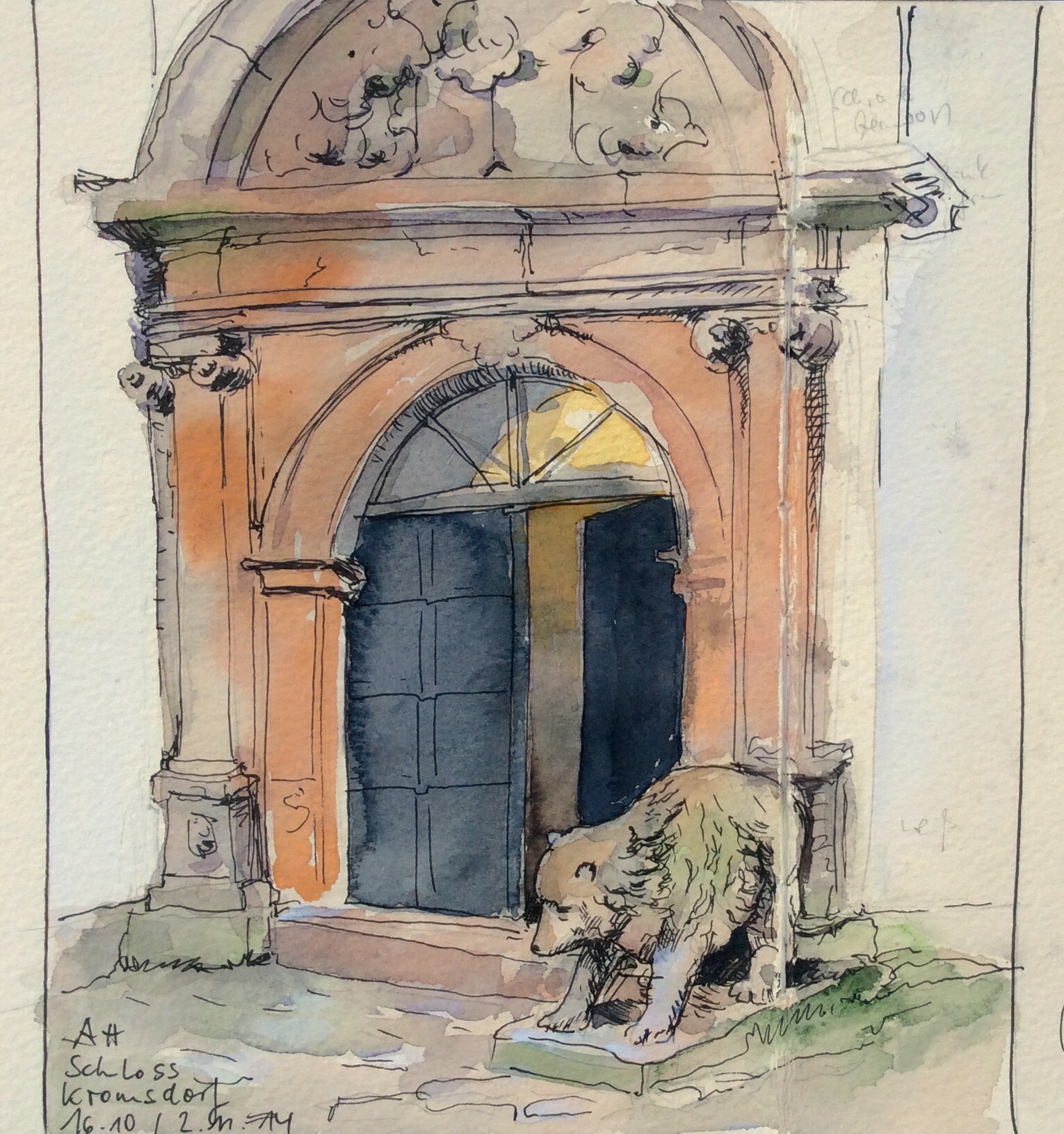 Veröffentlicht: 2. November 2014 | Autor: annettehofmann | Abgelegt unter: Aquarell, Bewohntes Gelände, Bewohntes Gelände 2, Ink&Wash, Reiseskizzen, Urban Sketching | Tags: Bär, Renaissance, Thüringen, Weimar |Hinterlasse einen KommentarManche Bilder meiner Herbstwanderung habe ich unterwegs nur mit einigen Strichen angelegt, in der Hoffnung, zu Hause den Faden nicht zu verlieren und sie fertig stellen zu können.