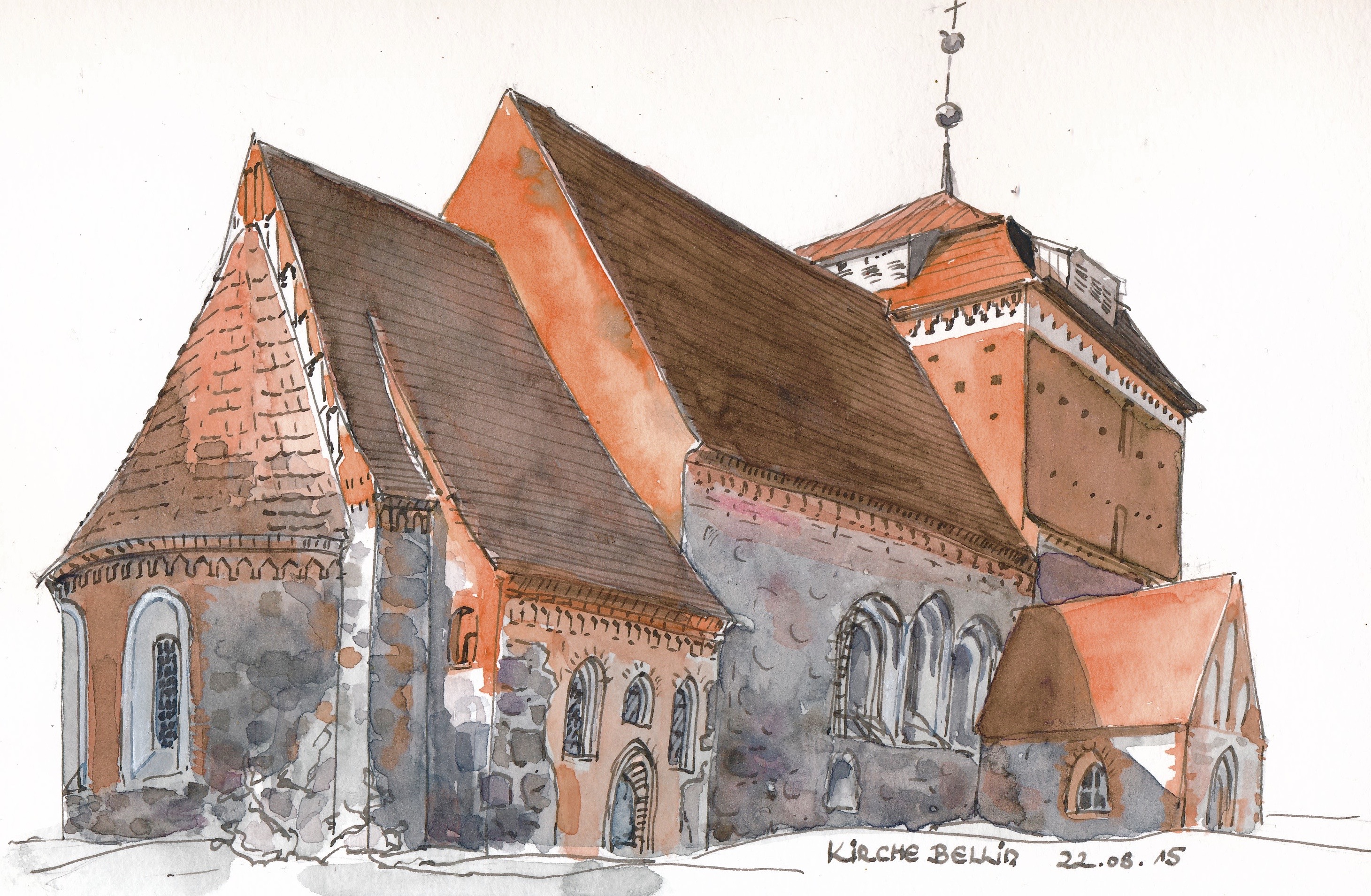 […] dritter und letzter Teil meiner Belliner Bilder ist heute noch eine Innenansicht der Kirche fertiggeworden. Die Ausmalungen sind im 19.Jahrhundert restauriert und im Zeitstil verändert […]