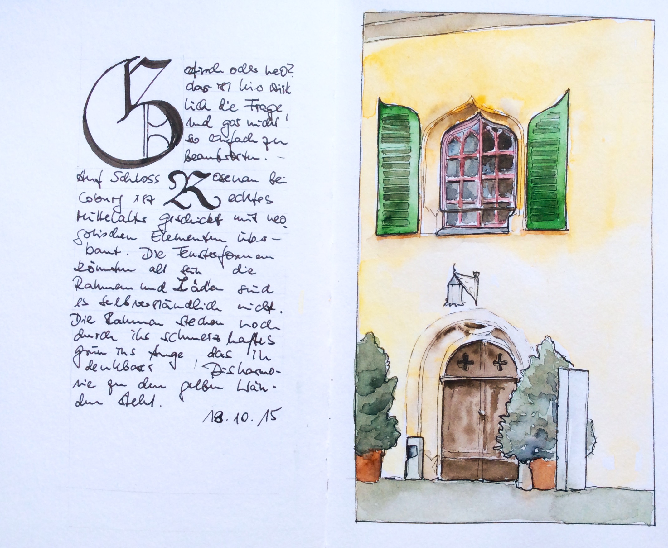 Das einige Kilometer von Coburg entfernte Schloss Rosenau hat einen original gotischen Kern, so dass es mir bei meiner Rast am vierten Wandertag schwer fiel, „echt“ und nachgemacht auseinander zu halten.