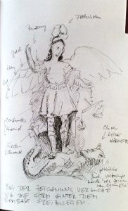 - Tag 2. Die ehemalige Jesuitenkirche, jetzt Universitätskirche ist über und über barock dekoriert. Ich finde wieder einen seelenwägenden Michael, und dieses Mal lese ich nach: so selten ist das ikonographische Motiv gar nicht ja, der Ausdruck „gewogen und zu leicht befunden“ erinnert noch daran.
