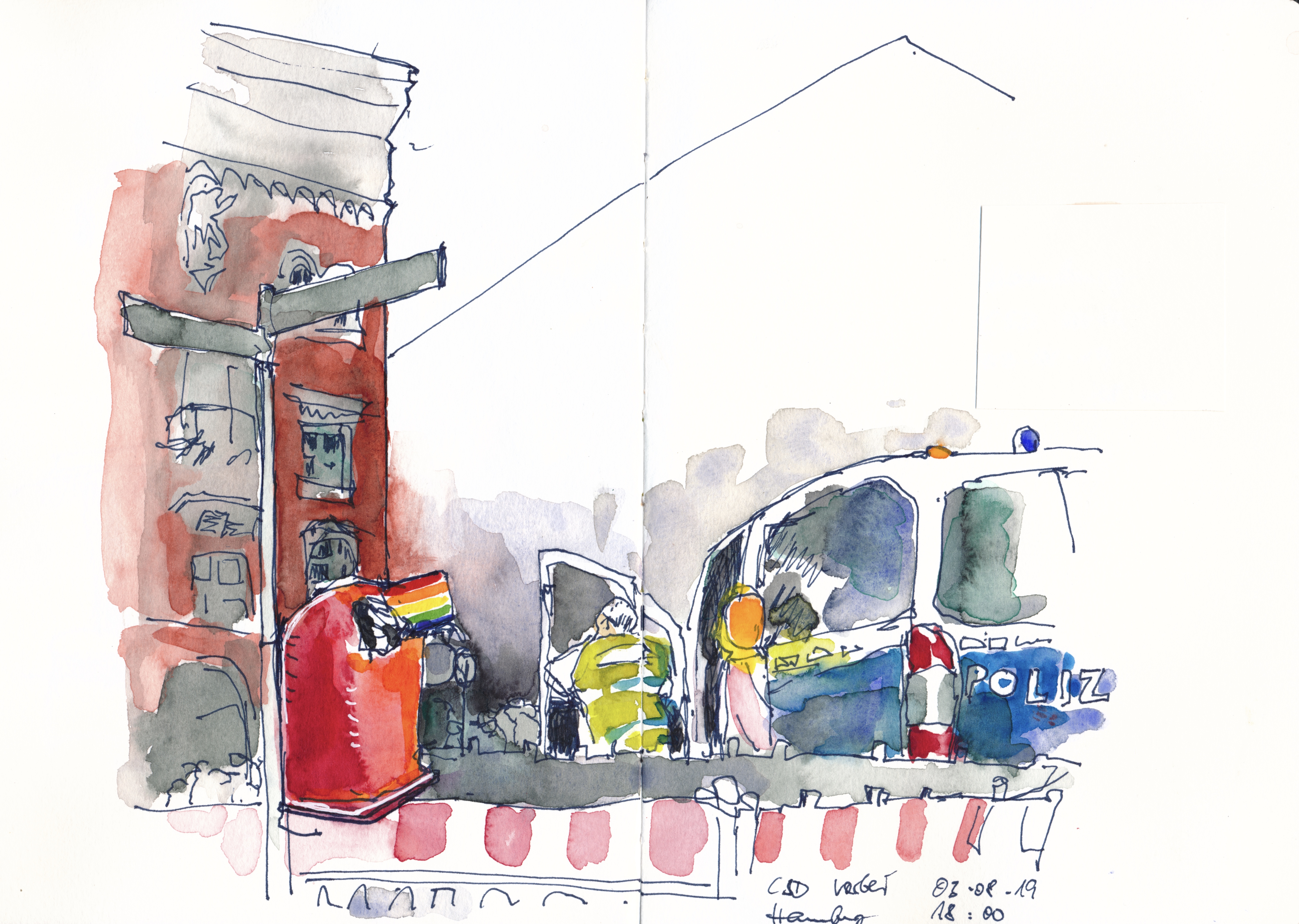 Veröffentlicht: 4. August 2019 Abgelegt unter: Allgemein, Alltag, Urban Sketching, visuelles Tagebuch | Tags: Hamburg, Hund, Realismus Ein KommentarZum Ende meines Urlaubs gab es noch einen Ausflug nach Hamburg. Anlass war die „Licht des Nordens“-Ausstellung in der Kunsthalle. Die Ausstellung ist nicht sehr groß, so dass noch ausreichend Zeit für Teile der ständigen Sammlung blieb. Hier stieß ich auf Leibls „Drei Frauen in der Kirche“, von dem ich zwei kleine Skizzen anfertigte – nicht ohne zu denken, dass ich mit dem Kopieren dieses Bildes gern Wochen zugebracht hätte.