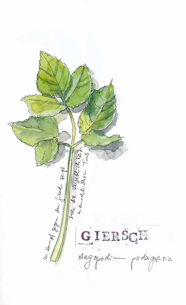 Veröffentlicht: 13. April 2020 Abgelegt unter: Botanische Malerei, Pflanzen, visuelles Tagebuch | Tags: Pflanzen 7 KommentareWann ich das Rezept zum ersten Mal ausprobierte, weiß ich nicht mehr, nur dass ich es in einem alten Kochbuch fand, in einer Zeit, als die Bücher noch geholfen haben: Man nehme einmal fast alles, was man um diese Zeit auf der Wiese und im Garten findet, und koche daraus eine Suppe. Später, als ich mich intensiver mit Heilkräutern beschäftigte, erfuhr ich, dass es auch einen Neun-Kräuter-Segen gibt, ein sprachmächtiges Stück altenglischer Poesie. Vermutlich kochte man auch im frühen Mittelalter schon ähnliche grüne Suppen, zumal die Supermärkte des ewigen Sommers noch lange auf sich warten ließen.