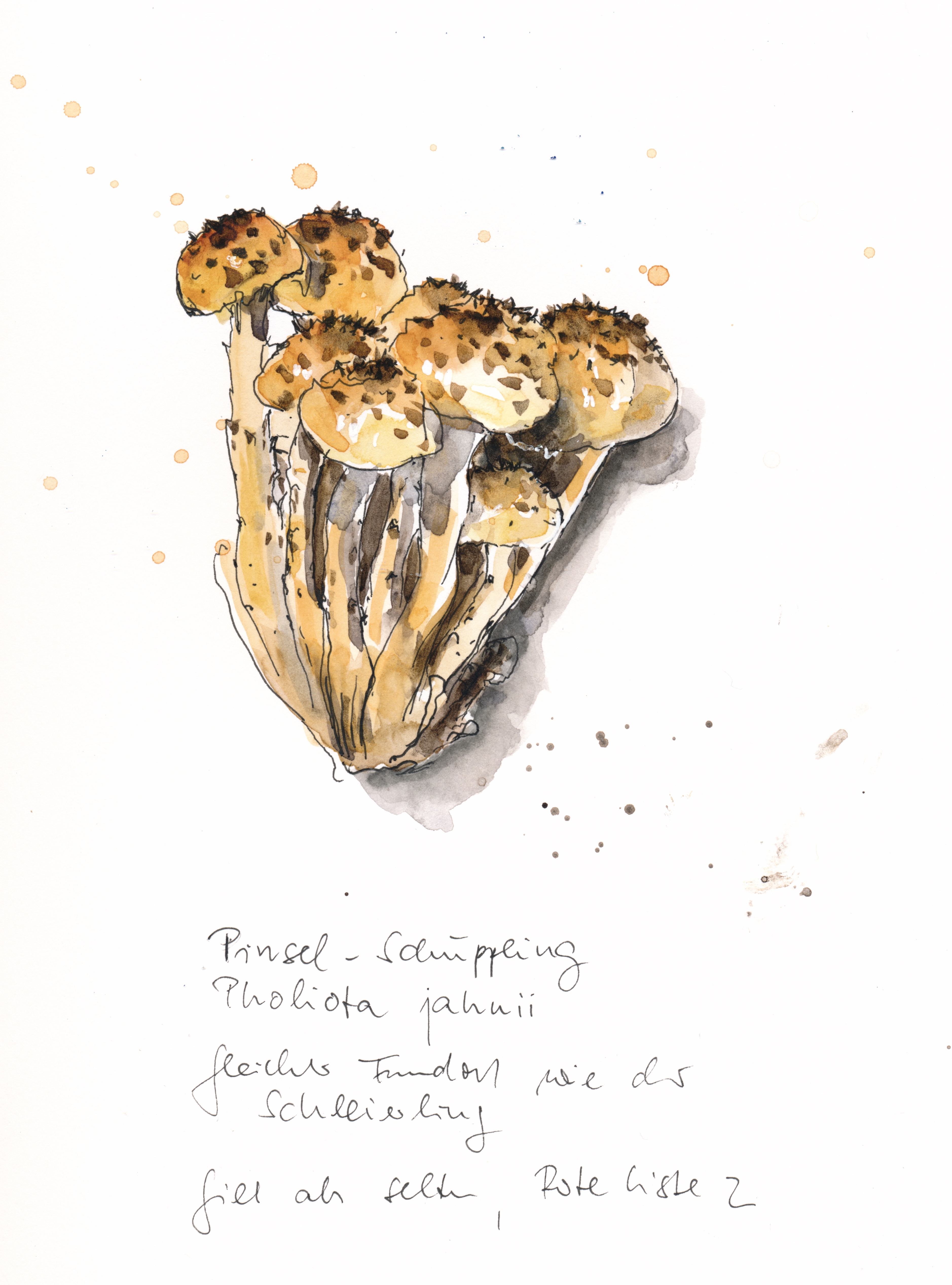 Dieses Jahr erst habe ich angefangen, Pilze zu zeichnen und unabhängig von ihrer Essbarkeit zu bestimmen. Ich bekam dabei eine Ahnung von einer unbekannten und mir bisher verborgenen Welt, die sich noch einmal ins unermessliche erweiterte, als ich in den auf sumpfigen Kalkböden wachsenden Wäldern in Schweriner Seenähe unterwegs war.