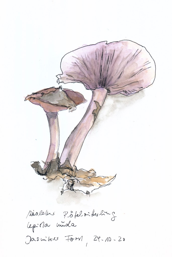 Veröffentlicht: 28. November 2020 Abgelegt unter: Botanische Malerei, Pflanzen | Tags: Botanical Art, Mecklenburg, Pilze Hinterlasse einen KommentarNebel und Nachtfrost kündigen den Winter an; die Pilzsaison ist lange vorbei. Bevor ich mich adventlichen Beschäftigungen zuwende, wollen noch diverse angefangene Skizzenbücher zugeklappt und weggeräumt werden, so auch das mit den Pilzen. (Ich hatte ihnen ein eigenes Buch spendiert, das natürlich noch nicht voll geworden ist.)