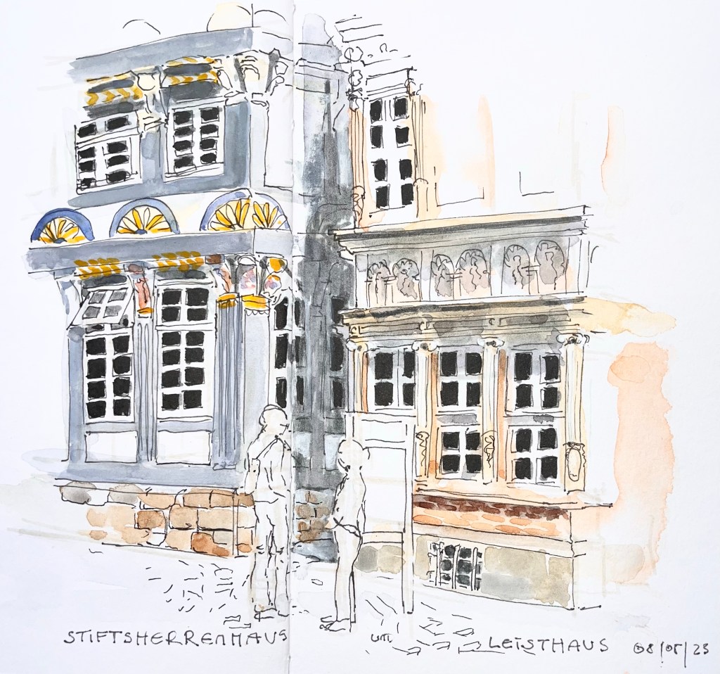 Veröffentlicht: 29. Mai 2023 Abgelegt unter: Reiseskizzen, Urban Sketching, Werra-Weser 2023 | Tags: Fachwerk, Mittelweser, Weserradweg Ein KommentarSeit fast zwei Wochen bin ich wieder zu Hause, und während Wohnung und Wäsche sich wieder in die alte Ordnung gefunden haben, verlieren die Orte entlang des Flusses die ihre schon wieder – jedenfalls in meinem Kopf.