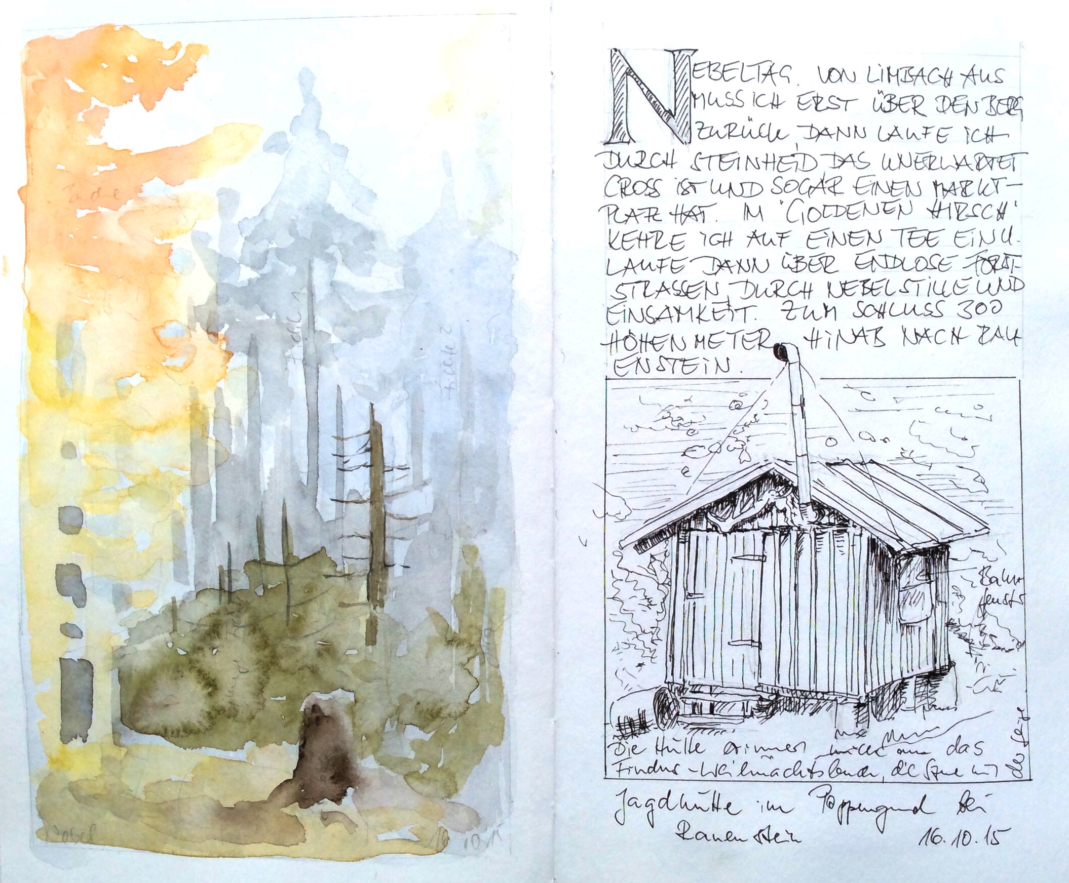 Veröffentlicht: 19. Oktober 2015 Abgelegt unter: Bewohntes Gelände | Tags: Herrmann Hesse, Pilgerweg, Rennsteig, Thüringen Hinterlasse einen Kommentar„… einsam ist jeder Busch und Stein. Kein Baum kennt den andern.“ Hermann Hesse, wie man ihn kennt. Im Gegensatz zum Dichter habe ich die Einsamkeit auf meiner Nebelwanderung vom Rennsteig hinunter durchaus genossen. Es wäre auch ohne Nebel kein Mensch zu sehen gewesen.