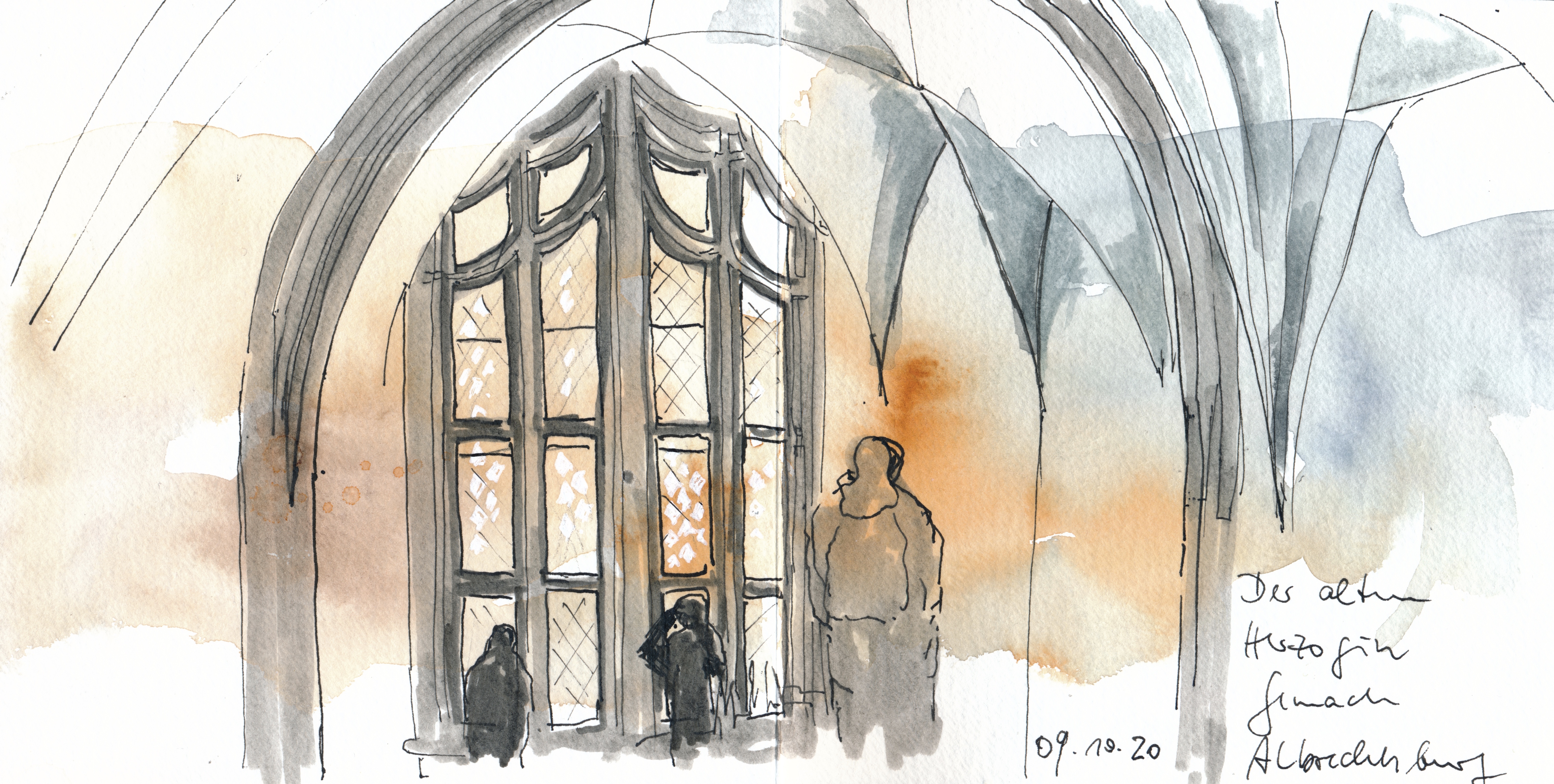Zuerst ein kleiner Nachtrag der Dresden-Reise, ein geistliches Chorkonzert im Meißener Dom – der Rücksicht auf die anderen Konzertbesucher geschuldet vor Ort nur mit Füller gezeichnet.