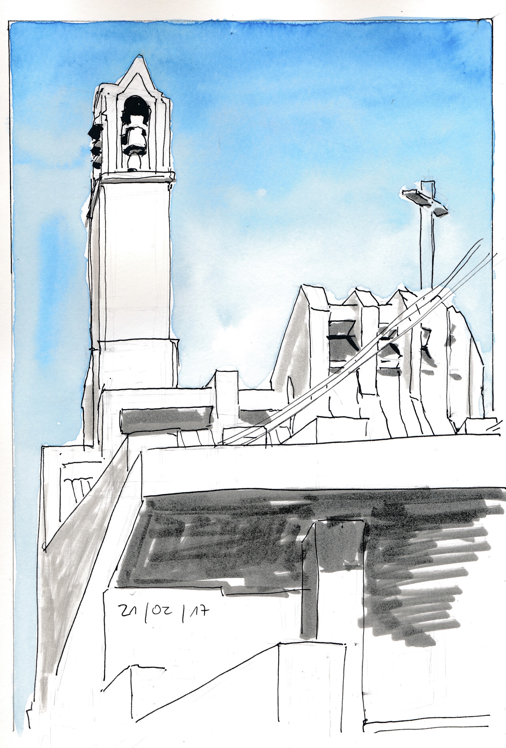 Immer wieder beeindruckt hat mich, wie sehr eine einfache, bodenständige Glaubenspraxis im Alltag verankert ist. Auch an Wochentagen sind die Kirchen abends zum Rosenkranzgebet voller Menschen. Eher zufällig hineingeraten, bleib ich hier in der Igreja do Carmo einfach sitzen und habe diskret weiter gezeichnet – die Farben dann allerdings zu Hause eingefügt. Die Kirche ist wirklich so bonbonbunt, was durch eine für unsere Augen unvorteilhafte Neonbeleuchtung noch verstärkt wird.